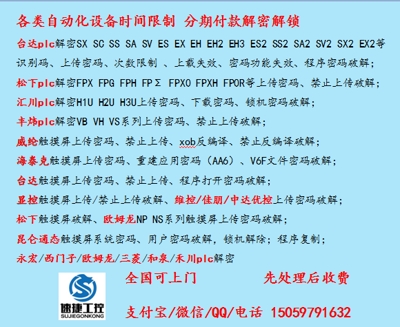 | 信捷plc | XC1解密,XC2解密,XC3解密,XC5解密,XCM解密 信捷只接欠款鎖機(jī) 時(shí)間限制 分期付款鎖機(jī)破解; |