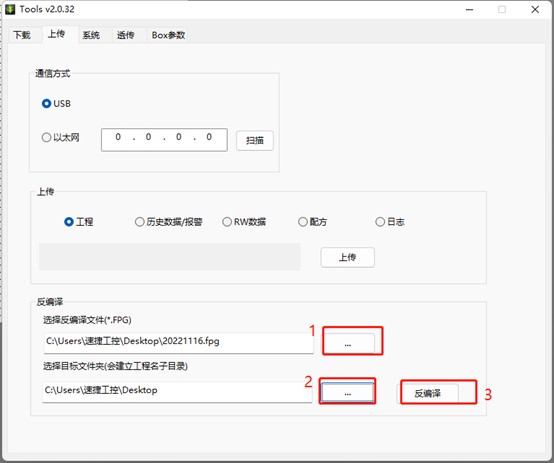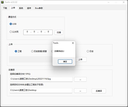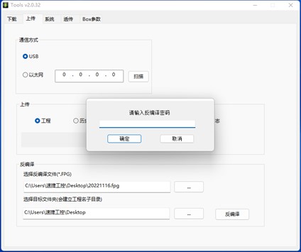 反編譯使用的文件是工程上傳打包文件,文件類型為 fpg,工程上傳打包方法可參考工程上傳或 U 盤上傳工程