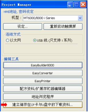 a、在Project Manager窗口中,點(diǎn)擊“建立儲(chǔ)存在CF卡與U盤中的下載資料”按鈕;
