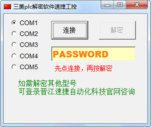 2,雙擊打開解密軟件,選擇能與plc正常通信的com口;